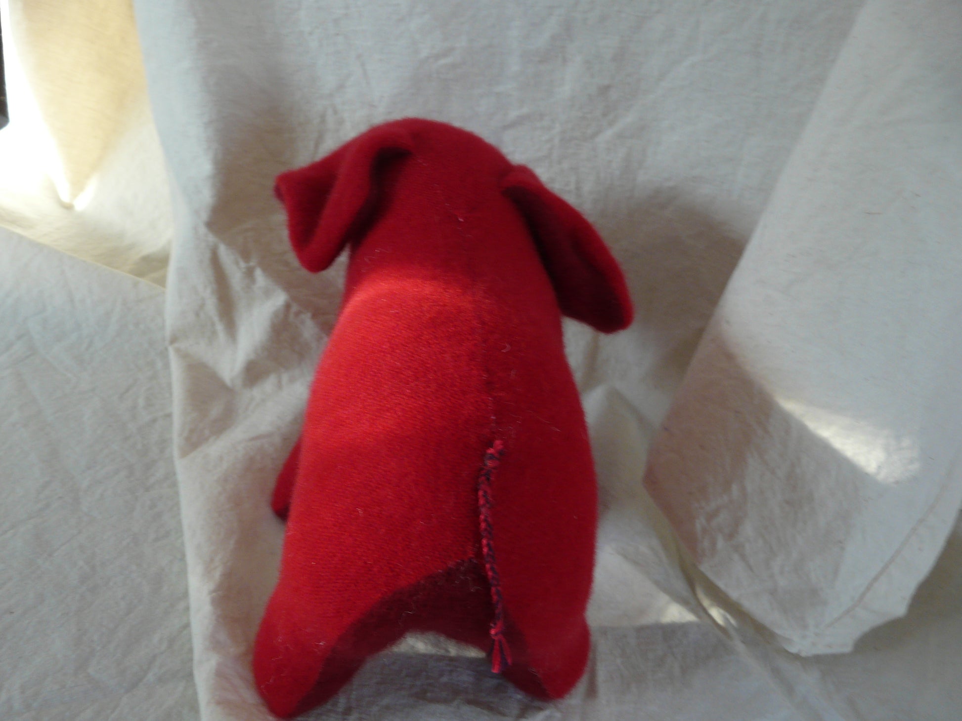 10" tall cashmere stuffed Elephant. Two colors: red with maroon tummy and braided tail. Eyes are knots (not beads) for safety. Soft and cuddly!